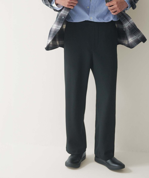 ウエストはゴム入りのイージー仕様で、フラットフロントのきれいなシルエットです。
