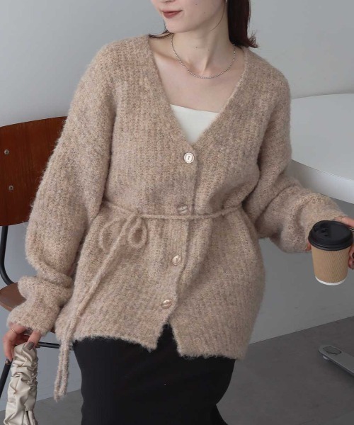 見た目にも暖かで、着心地も抜群。クセのないデザインで着回しやすい「MIXカラーブークレカーディガン」が登場◎