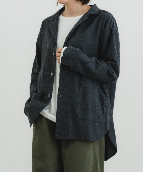 柔らかいコットンフランネル素材を使用した、メンズライクな雰囲気のシャツジャケット。