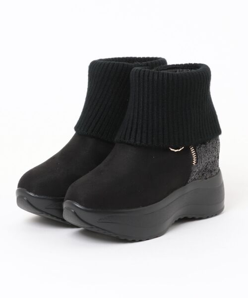 ニット素材の履き口から、リングとジッパーモチーフがさりげなく顔を出し、足元にアクセントをプラス。