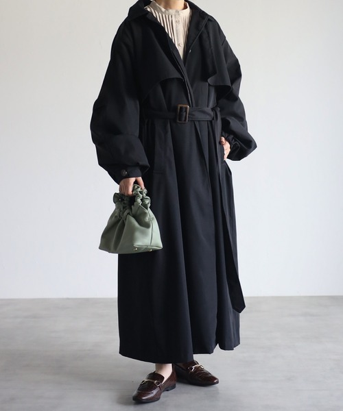 キーワード:ステンカラーコート コート レディース ロング丈 無地 秋 冬