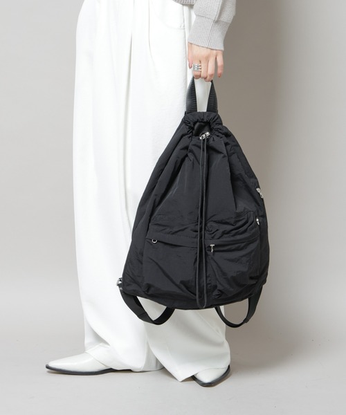 シーズンレスで活躍する、シンプルかつ実用的なドロストバッグ。マットな質感のナイロン素材を使用し、軽量で柔らかい仕上がり。ユニセックスで使用でき、通勤・通学・普段使いと幅広く活躍するアイテムです。