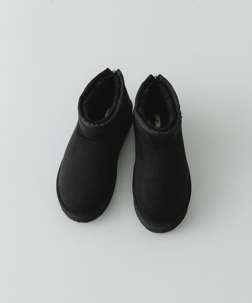 撥水加工を施したムートンブーツは、悪天候の日でも安心。厚底ながらフラット仕様で歩きやすく、驚くほど軽い仕上がりです。内側はフラッフィー素材で包み込むような温かさを実現。かかとにジップが付いているので、脱ぎ履きもスムーズです。