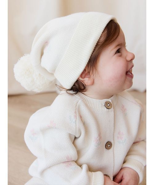寒い冬の季節やギフトにもぴったりなニット帽。同シリーズのカーディガンと合わせたコーディネートもおすすめです。
