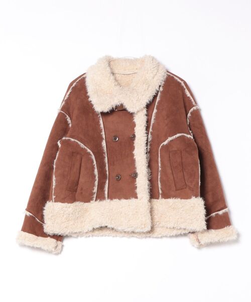 大きめの襟とダブルボタンデザインに、毛皮調の切替を組み合わせたショートジャケット。襟元や裾、袖口に施された毛皮風のアクセントが、季節感と立体感をプラス。コンパクトな丈感で、パンツスタイルにもスカートにも好相性。羽織るだけでコーディネートに存在感を与え、秋冬の主役アウターとして活躍します。