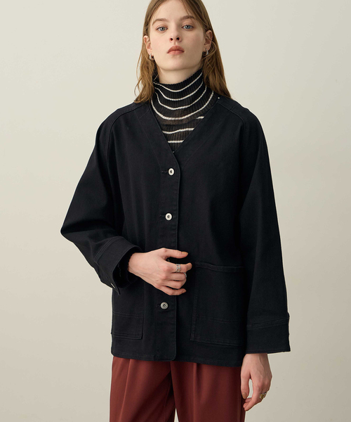 《デニム生地で仕立てられたアウターライクなカーディガン》