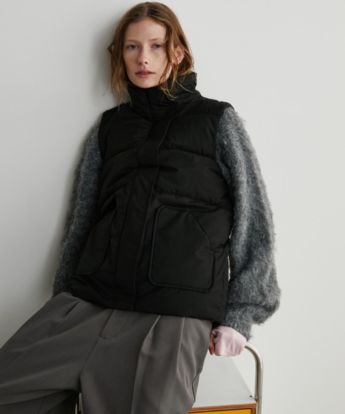 インナーやボトムを選ばないベーシックなサイジングの中綿ベスト。