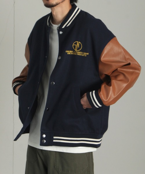 参考商品名:【UNCORD】 WOOLLIKE FAUX LEATHER SLEEVE STADIUM JACKET / ウールライク レザー 切替 スリーブ スタジャン