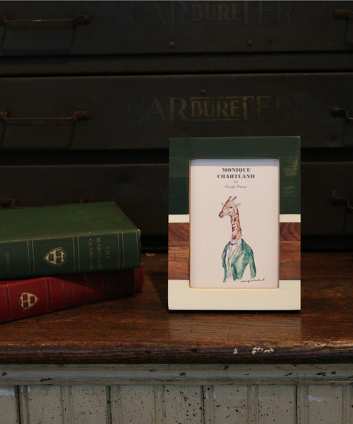 ビンテージのオールを思わせるウッドとその上にペイントされたカラーがモダンなデザインの写真立て。