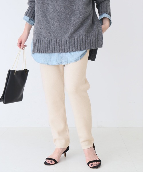 キーワード:パンツ レディース ウエストゴム スタンダード ストレート ハイウエスト フルレングス リブ 無地 秋 冬