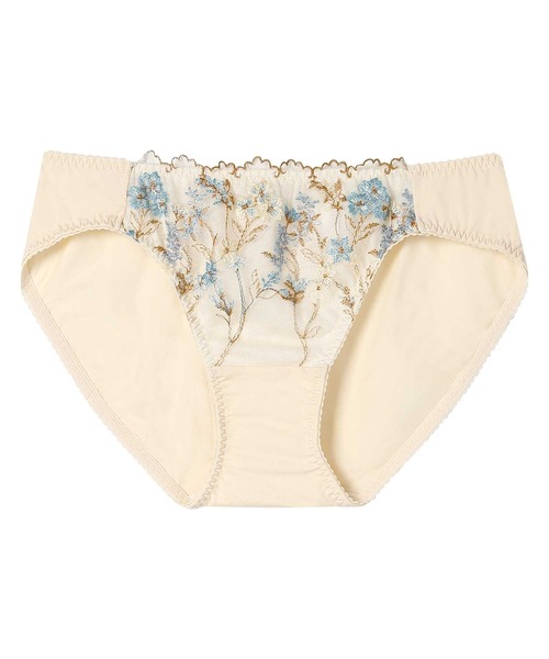・流れのある表情豊かなボタニカル柄を多色で表現したレースが華やかなセットショーツ。・ヒップ部分には伸びのよい生地を使用しているので、なめらかな肌ざわり。