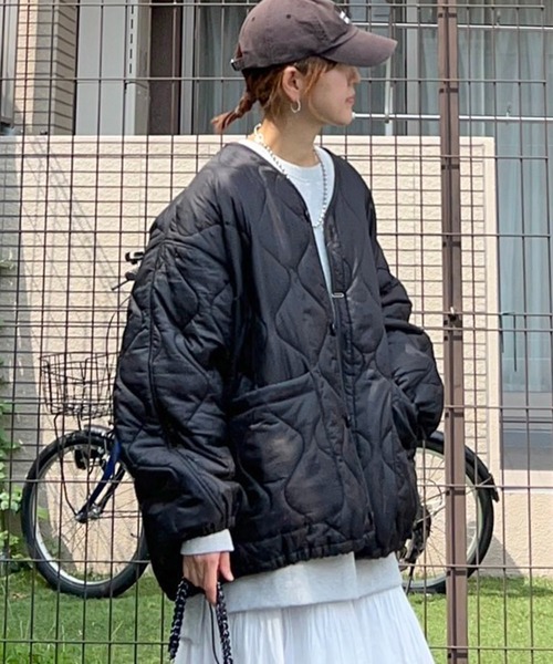 大きめのキルティングがカジュアル感もありながら大人っぽさも演出する一枚。