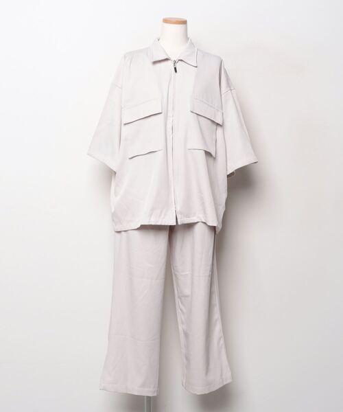 参考商品名:【セットアップ 2点セット】ポリトロストレッチドレープリラクシング半袖ビッグポケットジップシャツ+ワイドパンツ