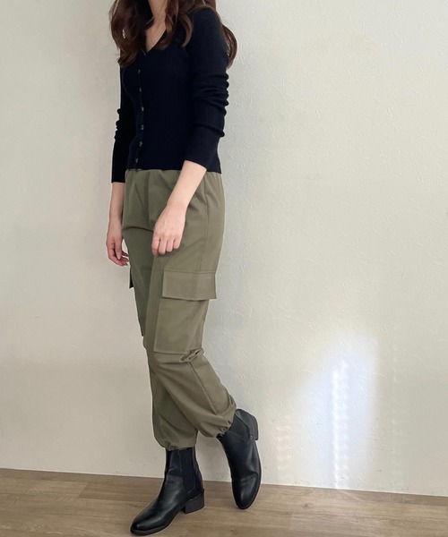 キーワード:カーゴパンツ レディース ウエストゴム ハイウエスト フルレングス 無地