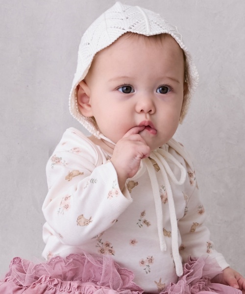 やさしくナチュラルな色合いが魅力のロンパースです。