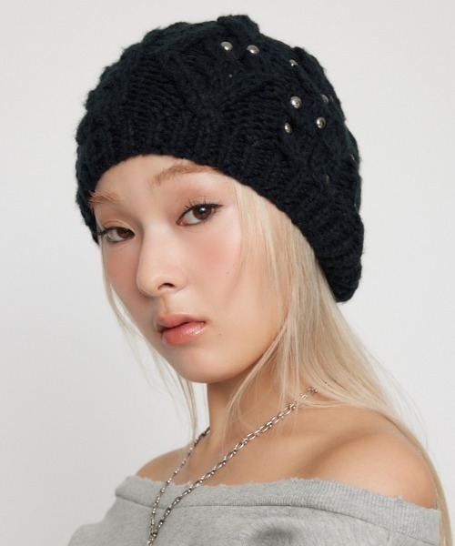 ■DETAIL:2000年代のテイストを落とし込んだニットベレー帽にLAGUA GEMらしいスタッズを打ち、キャッチーな仕上がりに。