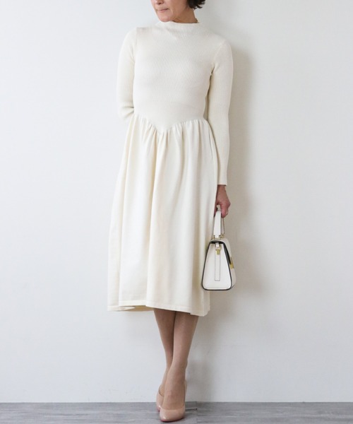 ミニマムなデザインがシルエットの美しさを際立たせる大人のエレガントなワンピース。身頃は程よくボディラインに沿うフィット感があり、上品なボトルネックのフォルムが洗練されたフェミニンな魅力を格上げします。ウエストはV字にカッティングすることで細見えを叶えつつ、ふんわりと広がるロマンティックなスカートのシルエットを強調。フットウェア次第で違ったテイストが楽しめる、スマートなフェミニンワンピースです。