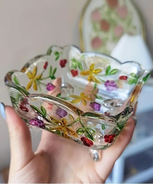 カラフルなフラワーがポイントのスクエア型のトレイ。