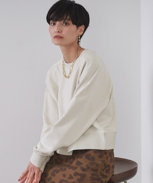 ・肩の切り替えデザインが特徴的なラメ裏毛のショート丈プルオーバーです。