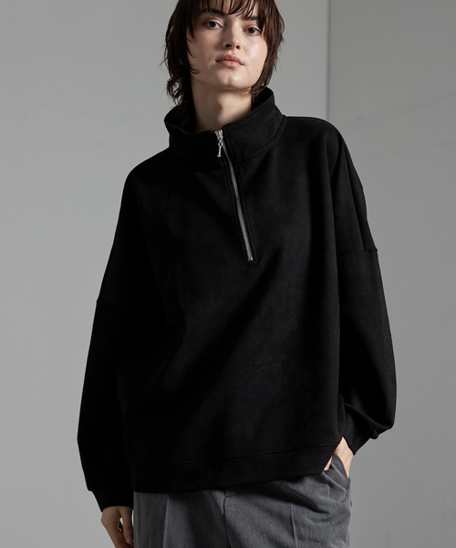 ハーフジップ仕様により、襟の開閉で首元の印象を自由にアレンジ可能。