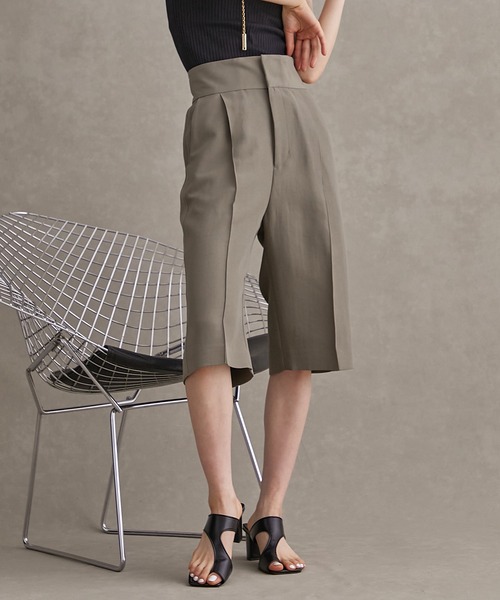 キーワード:パンツ レディース クロップド スタンダード ストレート ハイウエスト 無地