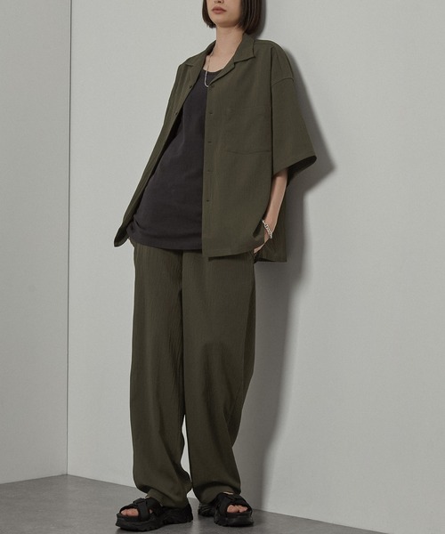 参考商品名:セットアップ 2点セット ビッグシルエットオープンカラー半袖シャツ&タックイージーセミワイドテーパードパンツ