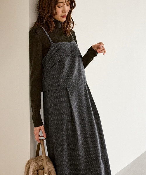 ・胸元のドレープが新鮮なキャミソールワンピース。