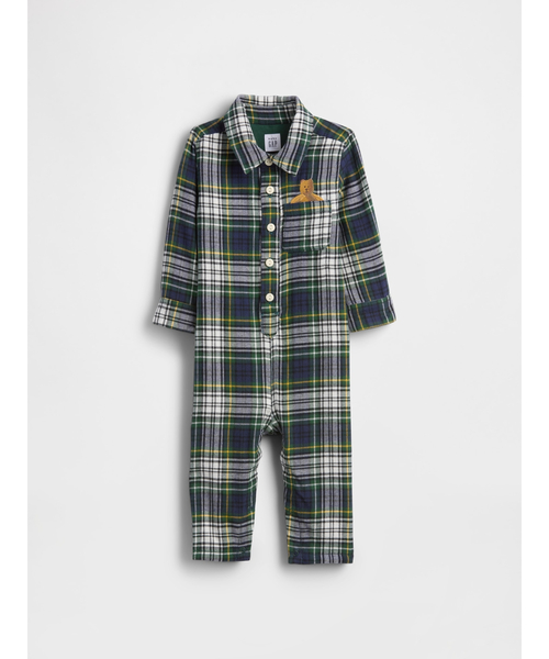 ブラッシュ加工を施した優しく心地良い肌触りのフランネル生地で作られたカバーオール