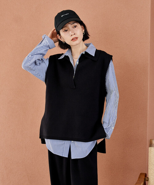 シャツやカットソーに重ねるだけで、一気に大人っぽく仕上がるベスト。