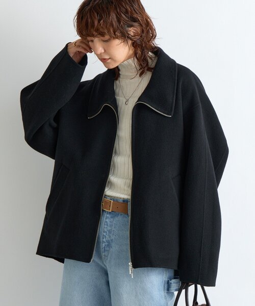 スタンドネックと大胆なZIP使いがハンサムな印象に●デザイン