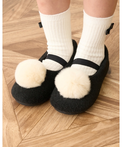 つま先のふわふわファー梵天が、とびきりキュートなバレエシューズ。