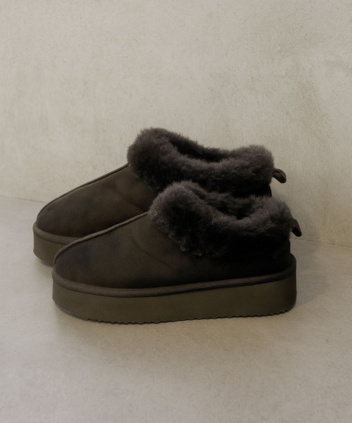 厚底でスタイルアップが叶うムートンシューズ。
