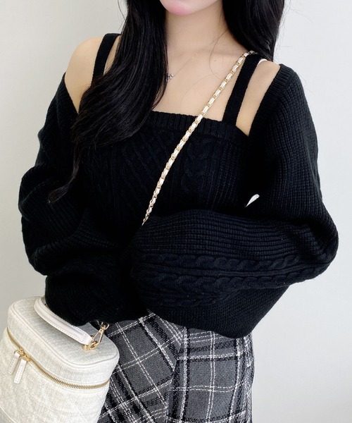 ショート丈のボレロとすっきりシルエットのキャミソールがセットになっています。