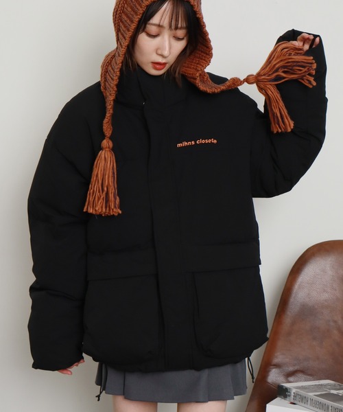 mihns closetの75Dストレッチ ユーティリティポケット中綿ブルゾンは、ワーク風のポケットディテールとすっきりとしたスタンドカラーが特徴の一着。