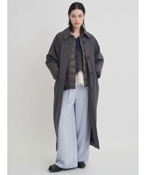 ステンカラーコートには張りのあるボンディング素材を使用し、立体的で洗練されたシルエットを演出。