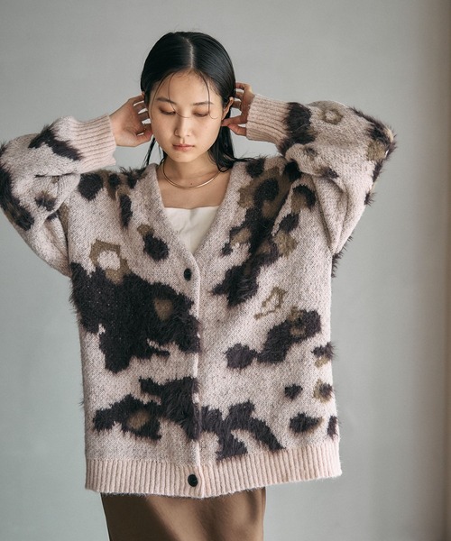 ニュアンス柄と凹凸感がポイントのニットカーディガン