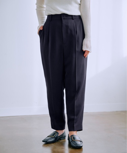 ウエストタックで腰周りをカバーしてくれる、テーパードパンツ。