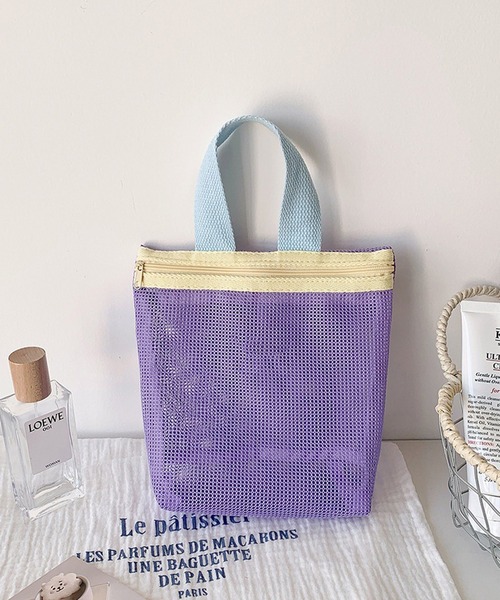 カラフルな色合いが可愛らしいメッシュ素材のハンドバッグ。