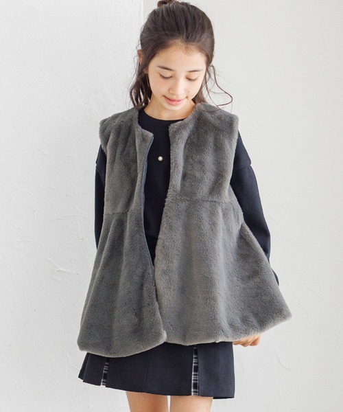 ジュニア アウター ベスト ファー ファーベスト フェイクファー ジップアップ ペプラム ノーカラー ガールズ 女の子 子供服 リンクコーデ ペアルック COCA