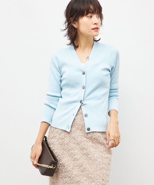 ・カシミヤ混のシンプルなリブのVネックカーディガン