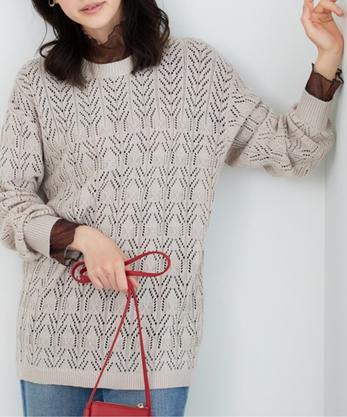《透かし編でオシャレ度アップ。チュニック丈で体型カバーも叶う嬉しい1着。》