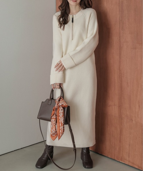 大人カジュアルなニットワンピースふんわり柔らかなリブニットで体のラインを拾わず、