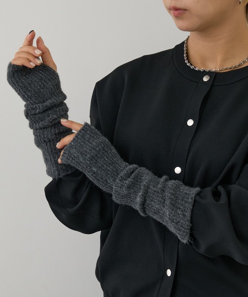 上品なリブ編みのデザインは、指先までしっかり暖かいのにすっきり見え◎