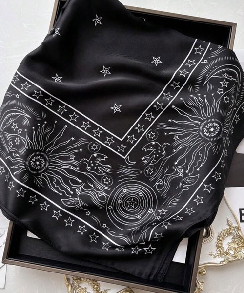 コットン素材と異なりサラッとしたシルクタッチの肌触りで大き目のバンダナ代わりに使用してもGOOD!