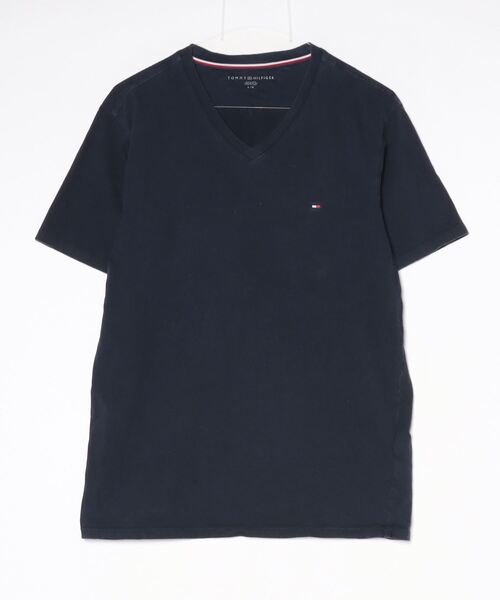 「TOMMY HILFIGER」 刺繍半袖Tシャツ L ネイビー メンズ