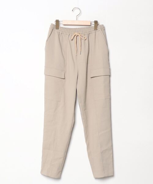 キーワード:カーゴパンツ レディース ウエストゴム スタンダード テーパード ハイウエスト フルレングス 無地