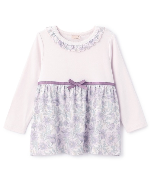 リボンラインや衿ぐりのフリルが女の子らしいチュニックです。