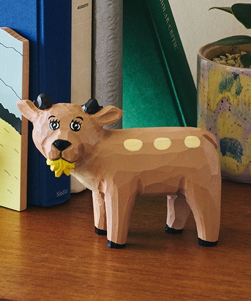まるで絵本から飛び出したような立体感の木彫りのオブジェ。