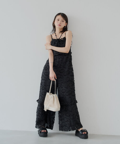 参考商品名:シアーフラワーホルターネックベアサロペット
