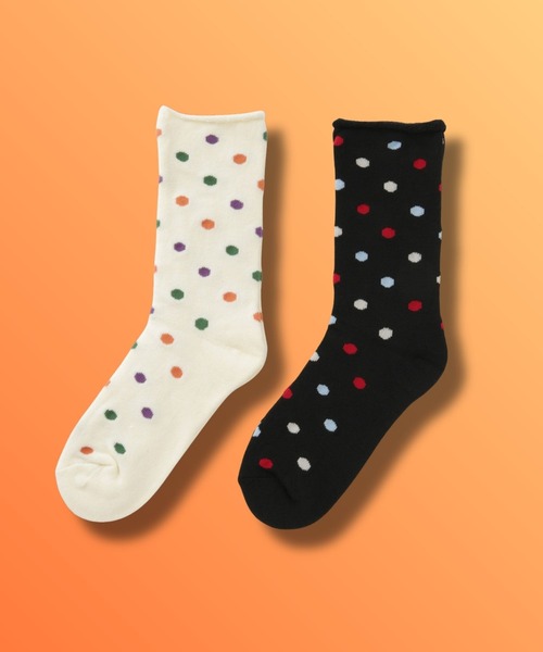 カラフルなドット柄がアクセントになった2足組クルー丈ソックス。